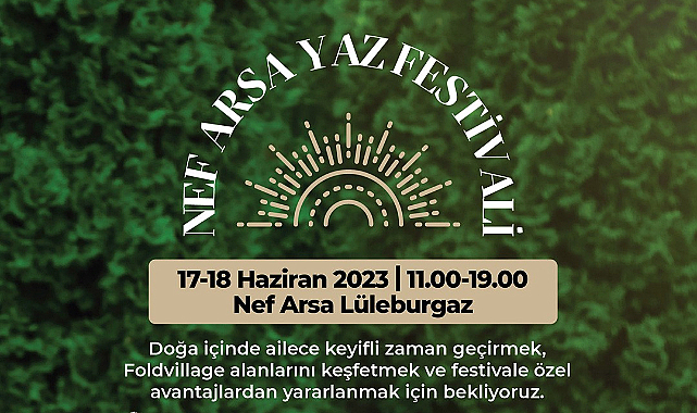 Güvenli arsa yatırımının öncü markası Nef Arsa, Türkiye’nin öne çıkan bölgelerinde müşterileri ile buluşturduğu arsalarda yaz festivali başlatıyor. Nef Arsa 2023 Yaz Festivalleri, arsa yatırım hayalini gerçekleştirmek isteyenlerin Nef Arsa deneyimini yakından tanıyacakları ve aileleriyle birlikte doğa içinde vakit geçirebilecekleri etkinlikler olarak planlandı. 2023 yaz ayları içinde planlanan 4 etkinlikten ilki 17-18 Haziran tarihlerinde Nef Arsa Lüleburgaz Tatarköy proje alanında gerçekleştirilecek.